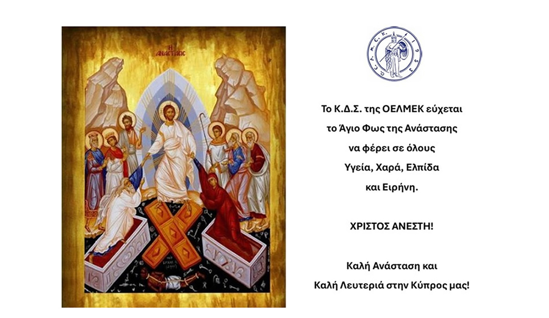 Σας ενημερώνουμε ότι τα Γραφεία της ΟΕΛΜΕΚ θα είναι κλειστά ενόψει των εορτών του Πάσχα τις ακόλουθες ημερομηνίες: 10, 13 και 14 Απριλίου 2026.
